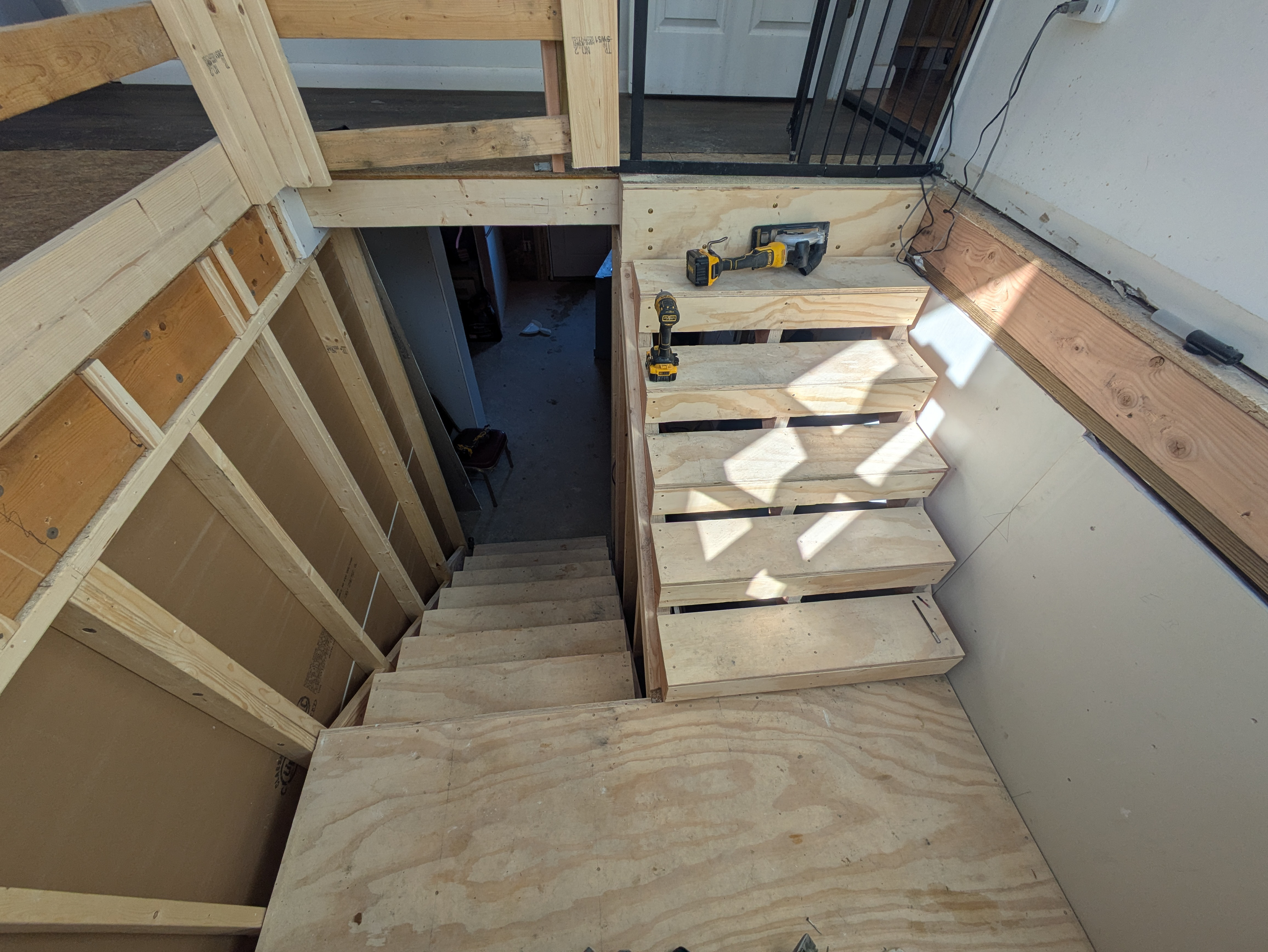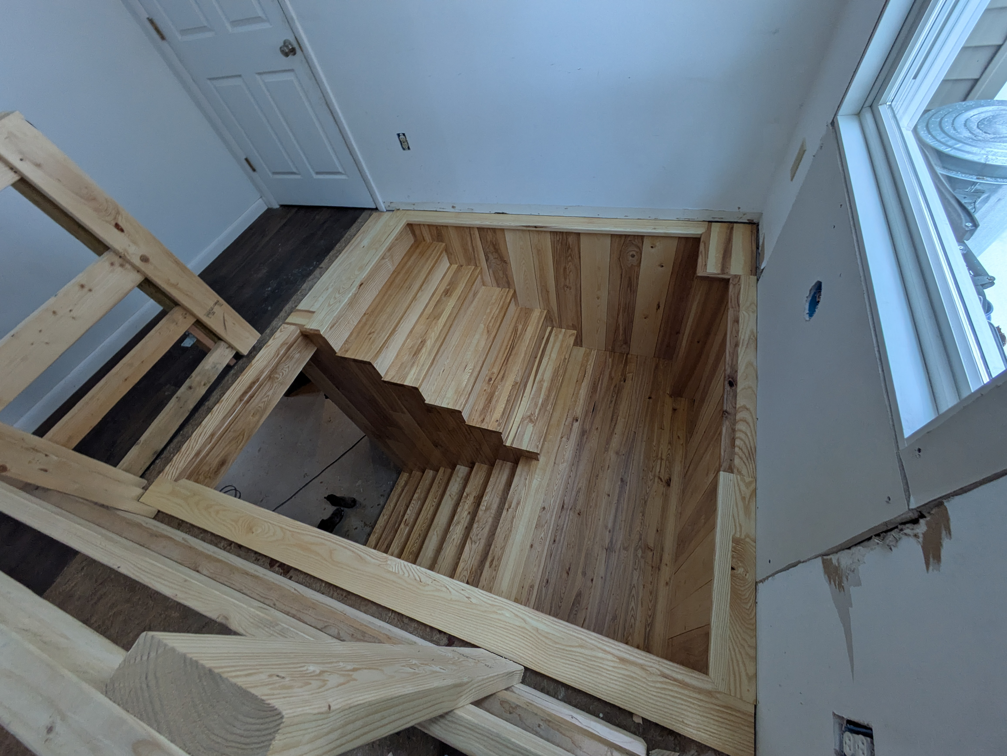 When I first looked at this project 7 months ago, there was no stairwell in this location. Our schedule was pretty packed so I encouraged the homeowner to hire my favorite framing crew to build the stairwell and frame the stairs. Now my crew is here to finish the project.