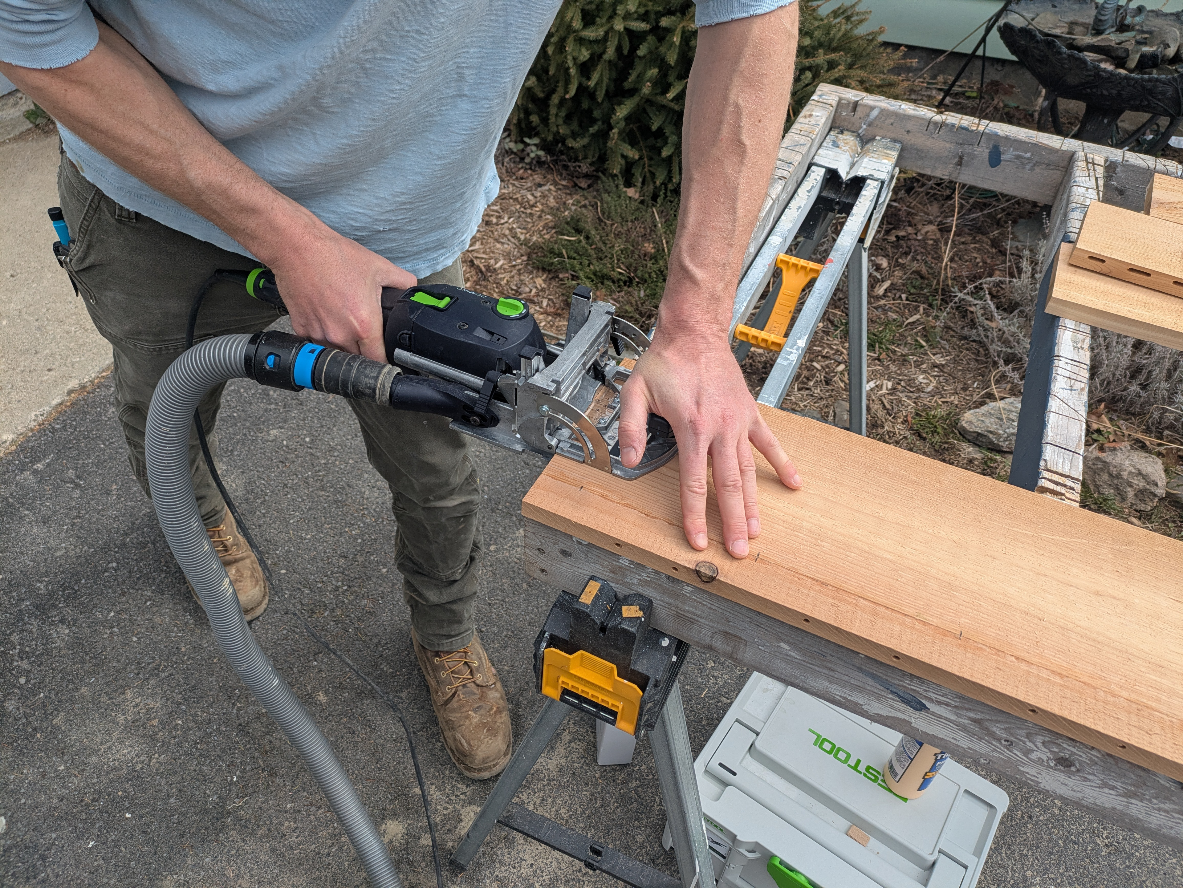 The domino joiner cuts mortises into the rails and stiles.