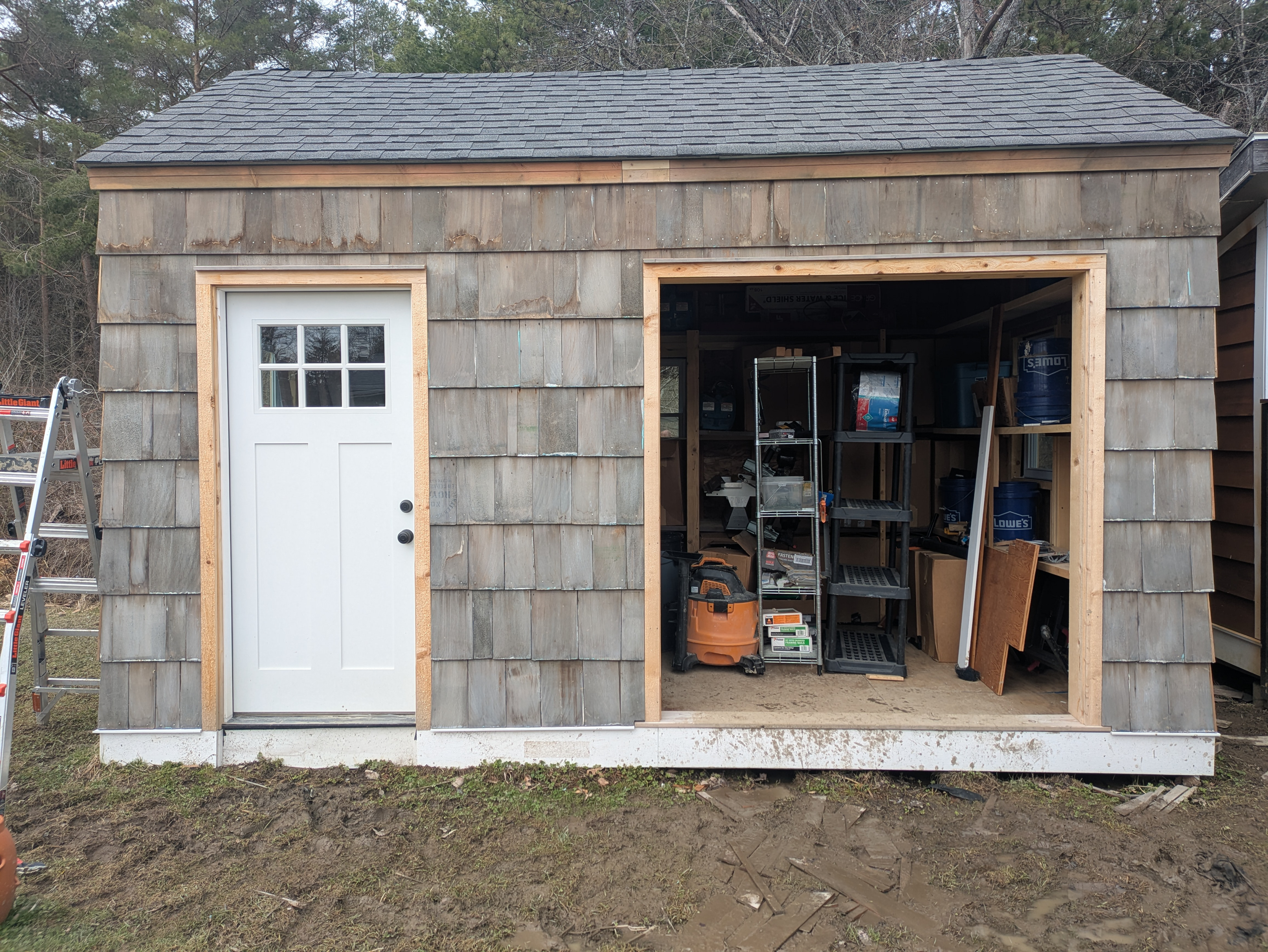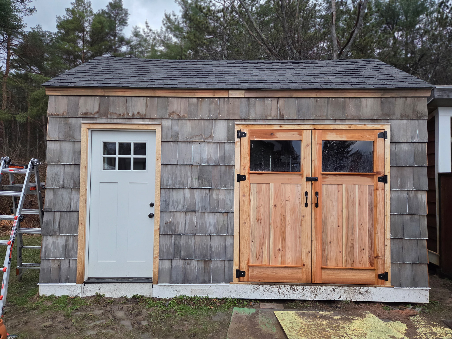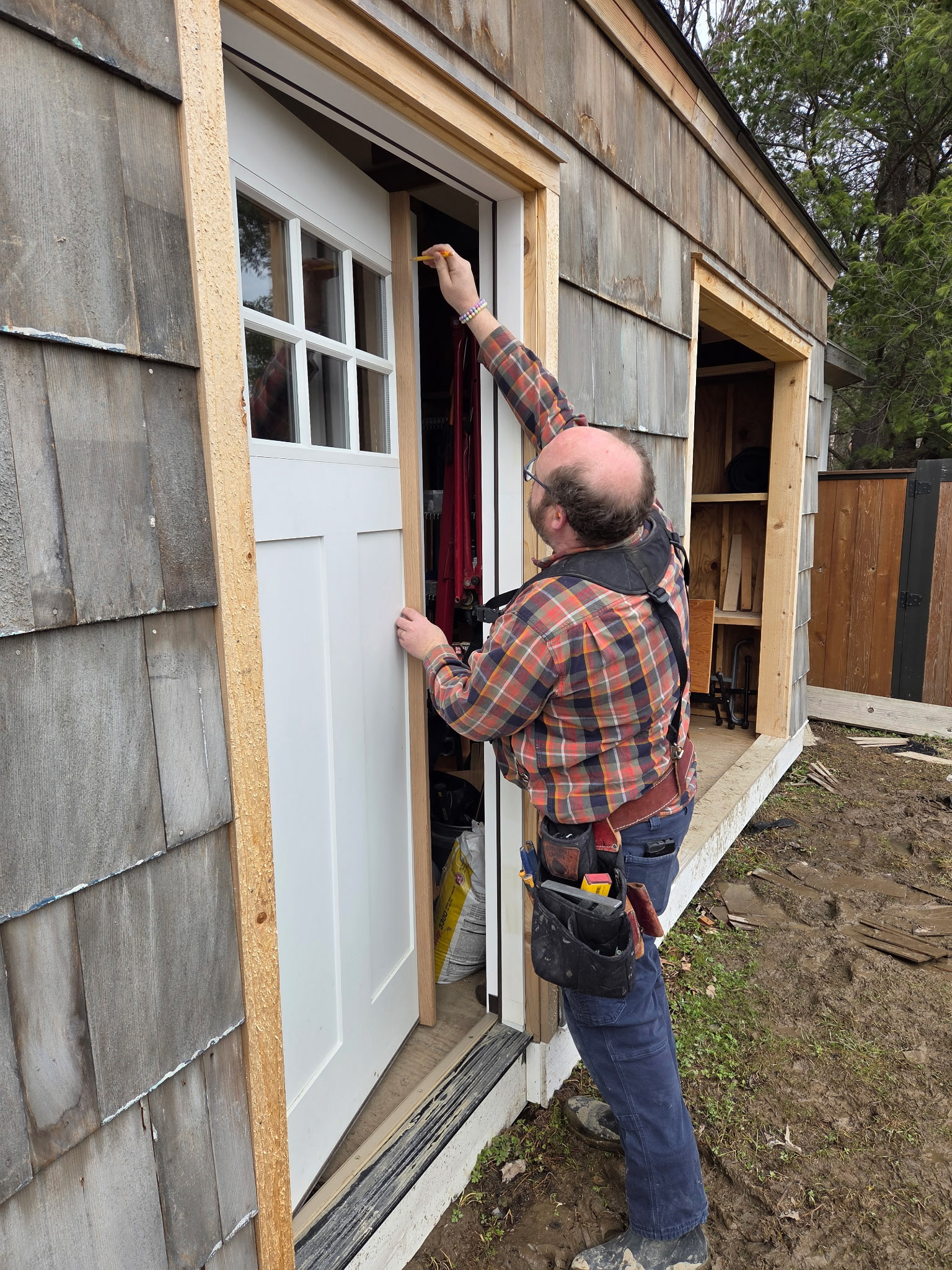 This shed has a new prehung door with craftsman style details. We used this pre hung door as inspiration for the new doors.