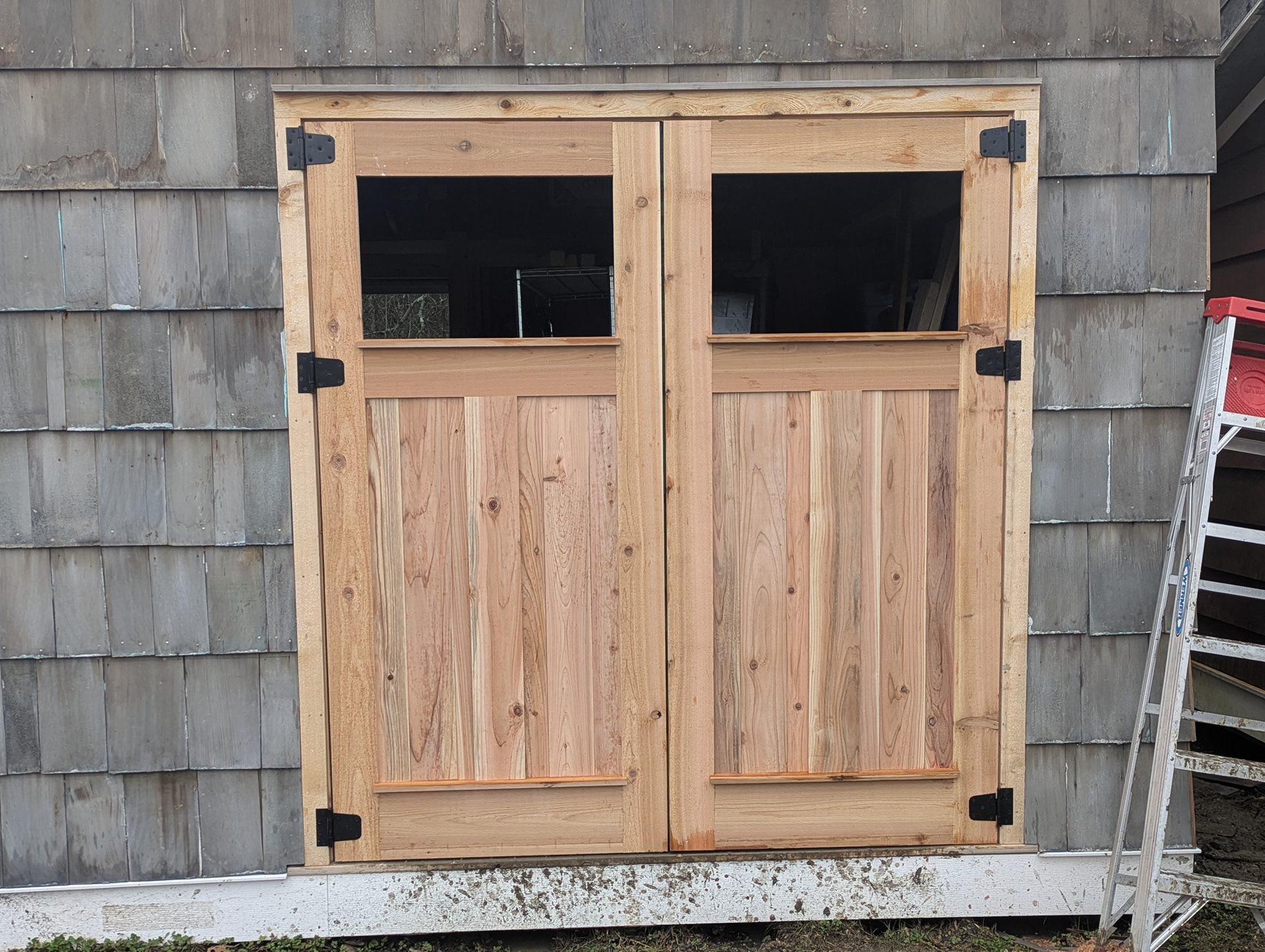 We recently built these carriage house style French doors from cedar.