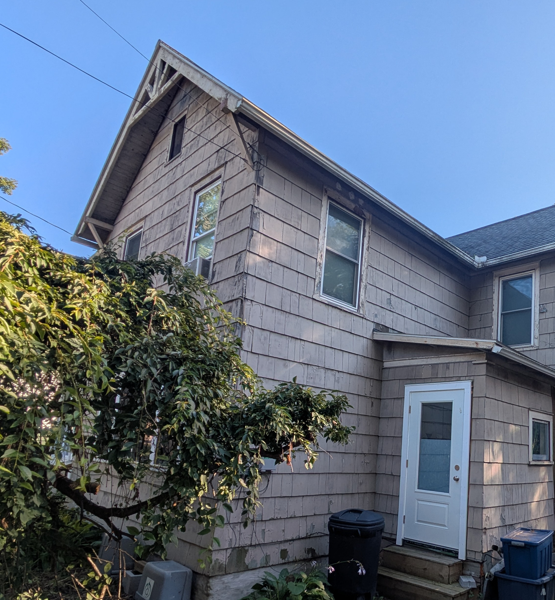 The siding and exterior trim have seen better days.
