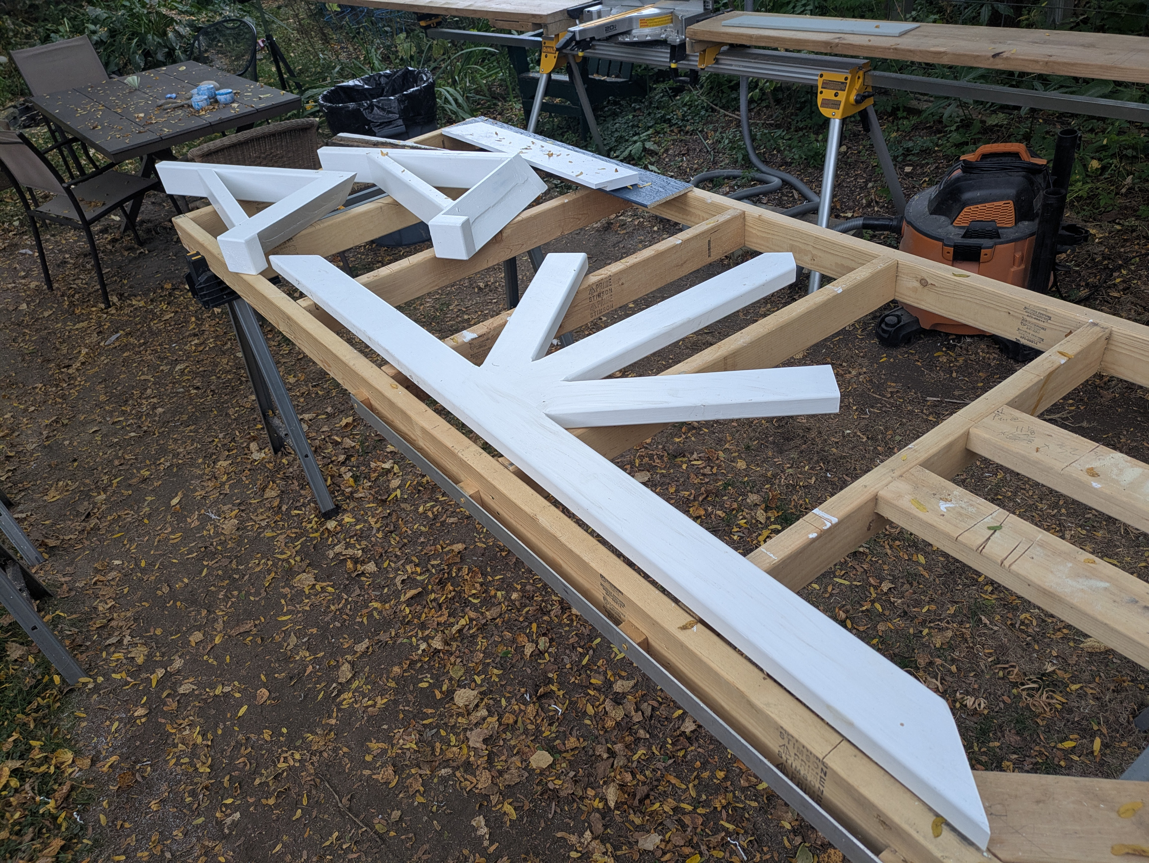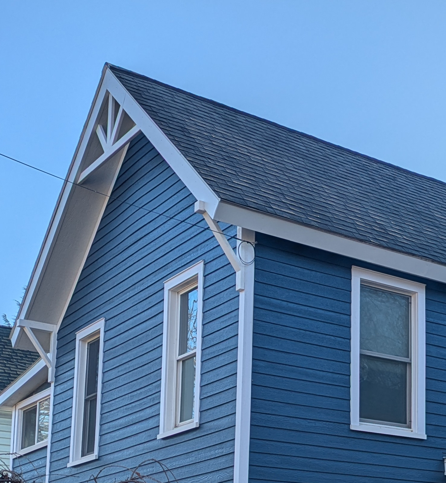 Corbels and decorative trusses are installed to complete the job.