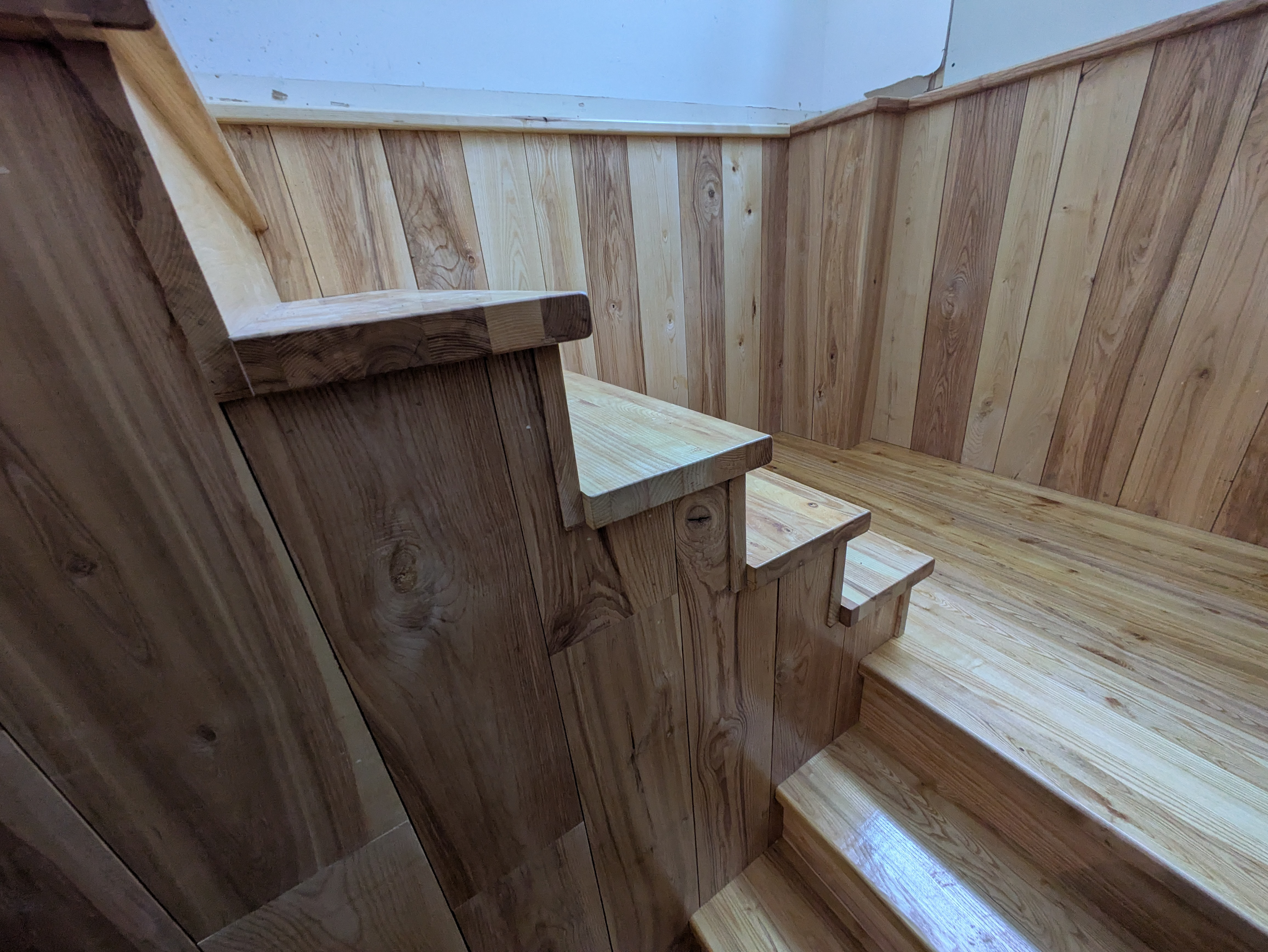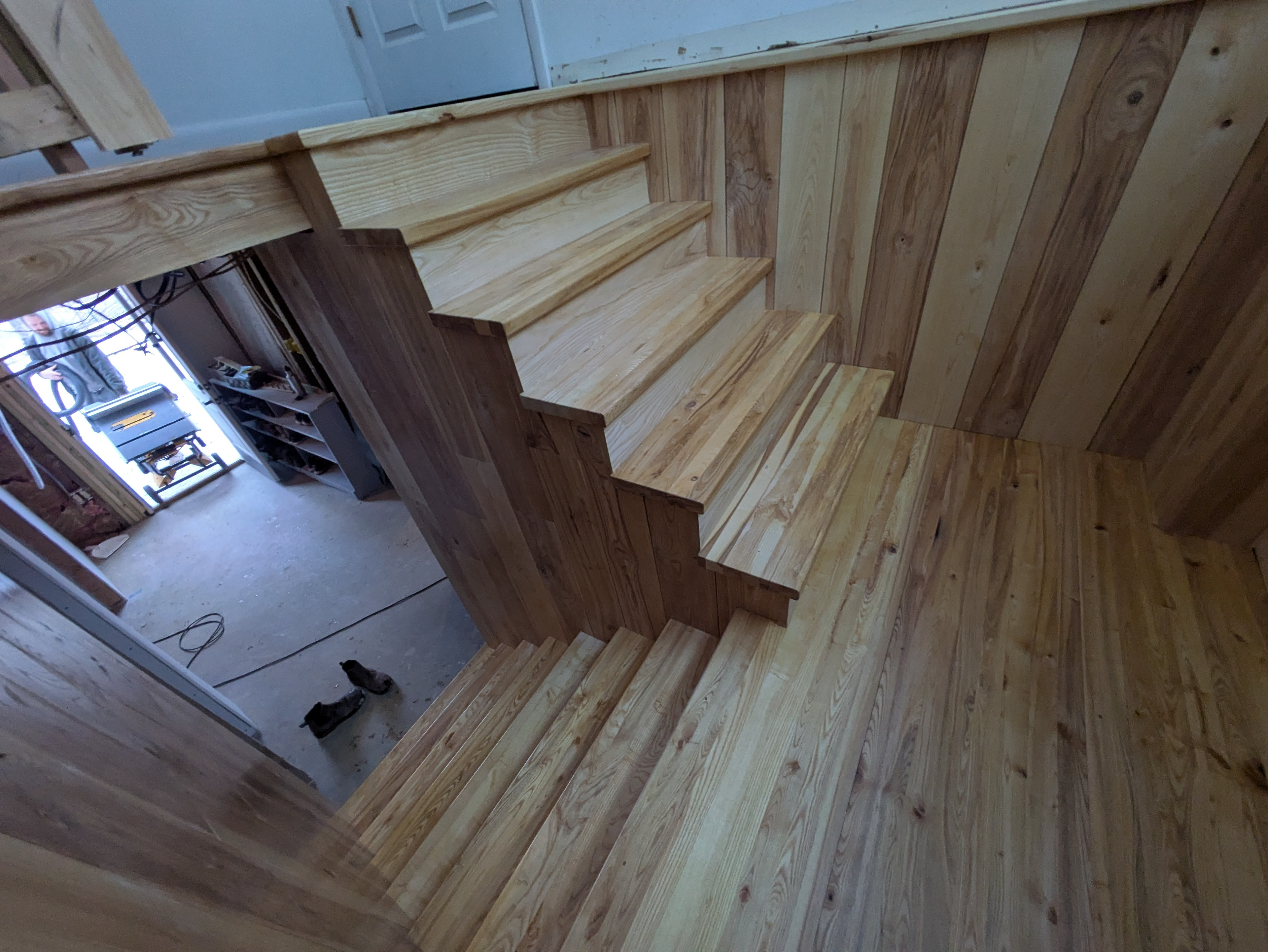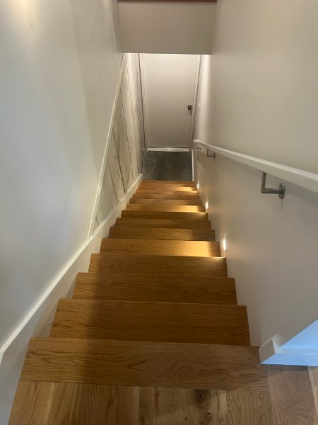 White oak basement stairs.